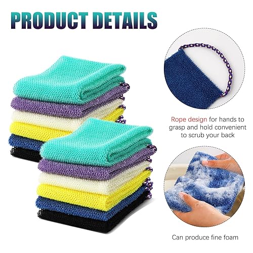 Package Includes: you will receive 6 pieces of exfoliating nets in green, yellow, white, black, blue and purple, a combination of 6 colors for daily use, your own replacement or to share with your family