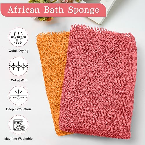 African Exfoliating Net Sponge - 4pc Body Scrubber Set(Pink- Orange)