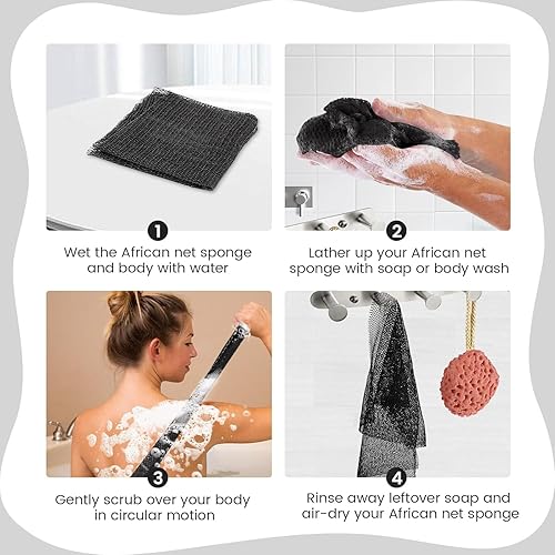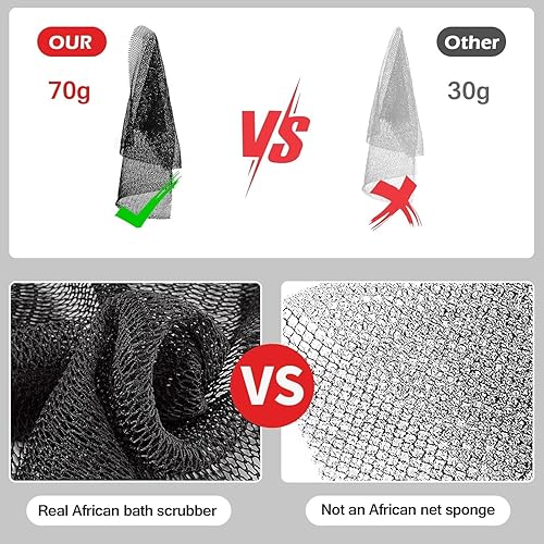 Authentic African Net Sponge: The distinction lies in its weave, which stretches horizontally to approximately 66 inches / 170 cm, adequately meeting your daily bathing needs. It is recommended to soak the product in hot water for 15 minutes prior to use.
