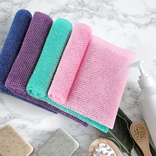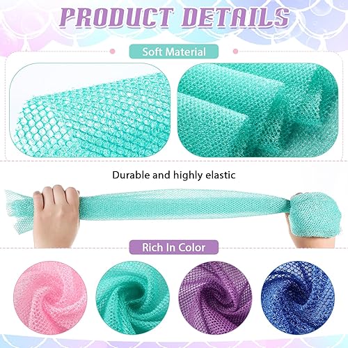 Exfoliating Nylon Mesh Set: you will receive 4 exfoliating shower wipes in four colors, measuring approximately 31.5x 11.8 inches, offering ample coverage; This shower net can also be cut, you can cut according to the size you need
