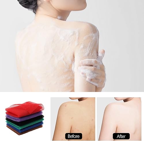 Total 6 African net bath sponge in different colors, enough for you to share with families. Note: slight fading is normal at first and will not fade after several uses, please soak the product in hot water for 15 minutes before use
