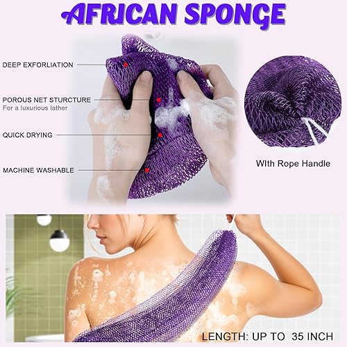 Vibrant Purple Design: This african net sponge authentic comes in a striking purple color, adding a touch of elegance to your bathing routine. Its compact vacuum packaging makes it easy to store and perfect for travel.