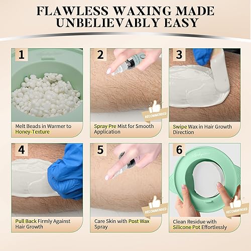 【PROFESSIONAL SMOOTHNESS, NATURALLY PAINLESS】Our plant-powered wax glides on smoothly, removing even stubborn hair gently yet thoroughly—no burns, no residue, just weeks of confidence-ready smoothness.