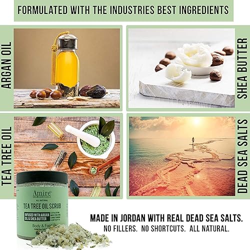 DEEP CLEANSING & EXFOLIATING: Made using a blend of Tea Tree Oil, Dead Sea Salt Minerals, and other natural ingredients, Amire body and foot exfoliator scrubs provide deep and powerful cleansing while being gentle on your skin to remove dead skin cells to reveal smooth, supple skin