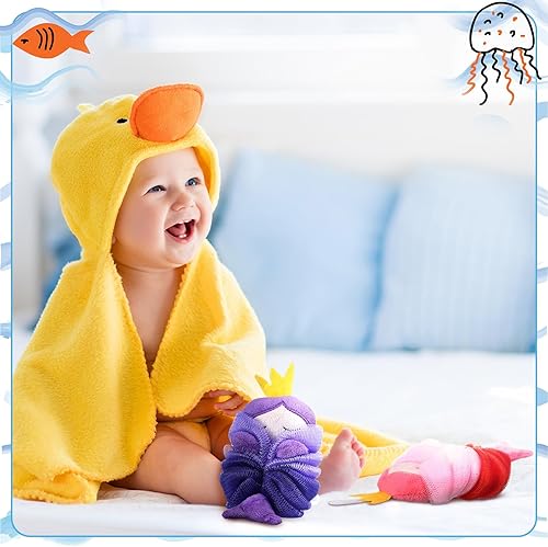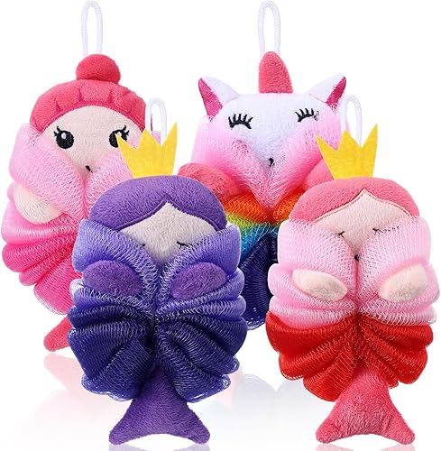Warm tips: the product may be partially loose during transportation, which can be adjusted by pulling the rope inside the product 4 Styles available: you will receive 4 pieces animal bath loofahs in the package, 4 different styles available, cute and lovely, enough numbers and various styles, proper for you to apply in daily time, and you can also replace them or share them with others as you like