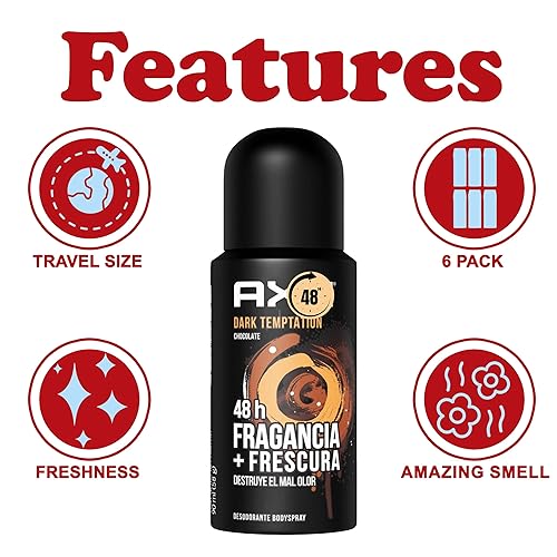 LONG-LASTING ODOR PROTECTION: Stay fresh and confident with Axe Dark Temptation body spray for men. This long-lasting deodorant spray delivers up to 48 hours of odor protection with a bold chocolate fragrance that stands out.