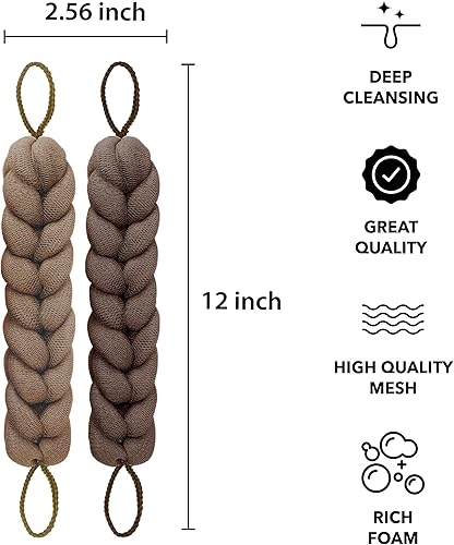 Braided Stretchable Design: The unique braided design makes our loofah sponge stretchable, perfect for scrubbing your back and other hard-to-reach areas.