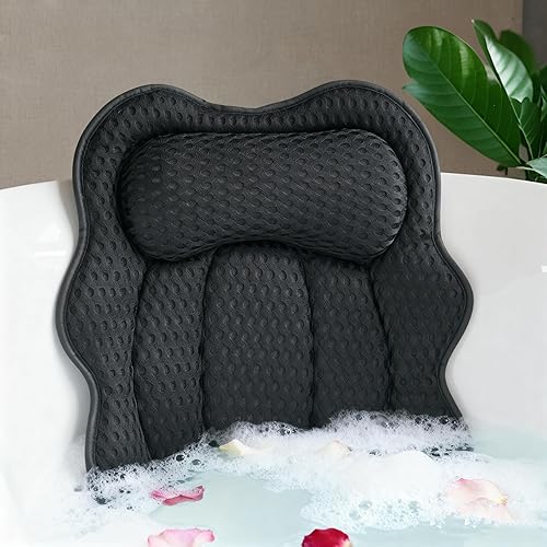 [Soft 4D Air Mesh Fabric]: Bath pillow for tub made with 4D Air Mesh fabric, bath pillow offers a soft and comfortable surface for your head and neck. The breathable material enhances airflow, making each bath a more refreshing and relaxing experience