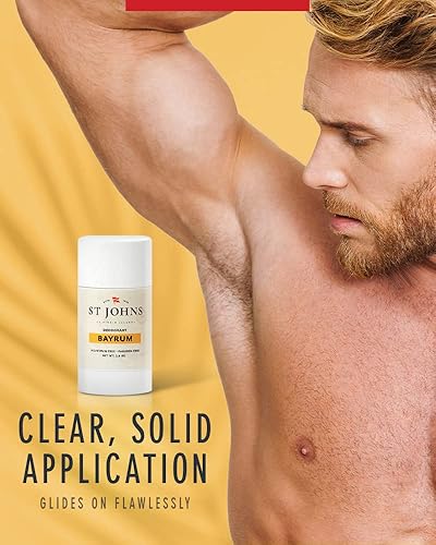 LONG-LASTING & SOOTHING - This clear solid deodorant stick glides on smoothly, goes on clear, and dries fast while the soothing formula moisturizes underarms. Plus, no aluminum means St Johns Bay Rum Deodorant leaves behind NO pit stains!