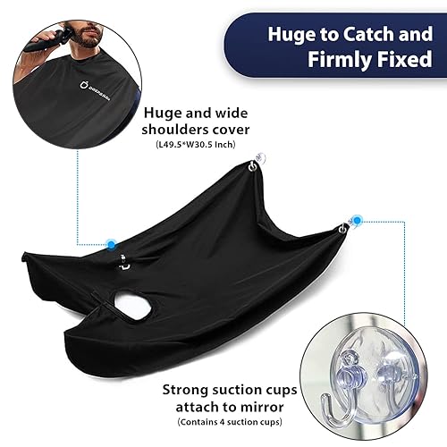 Beard Bib Apron - Non-Stick Shaving Cape with Suction Cups(Black)