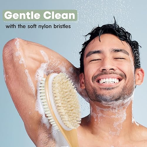 【Dry & Wet】The stiff bristles can be used to scrub legs,back and other insensitive areas of the body in the shower or for dry brushing to exfoliate skin.The soft nylon bristles can provide a non-abrasive clean, ensuring your skin feels refreshed and smooth without irritation.
