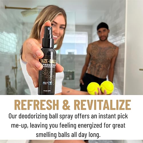 AMAZE BALL SPRAY – Talc-free groin deodorant made with DeoPlex, aloe, and witch hazel for fast-drying odor and sweat control in private areas.