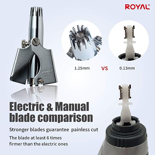 [SAFE & GENTLE] If you still use scissors or tweezers to trim hair, you may occasionally risk hurting your skin. The ROYAL Trimmer is equipped with precision rotary cutters, ensuring that the cutting blades never come into contact with your skin