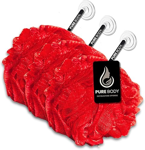 Pack of 3 Exfoliating Sponges: Includes three 70-gram mesh loofahs, perfect for daily use to gently scrub and exfoliate your skin. Hang to dry with attached rope