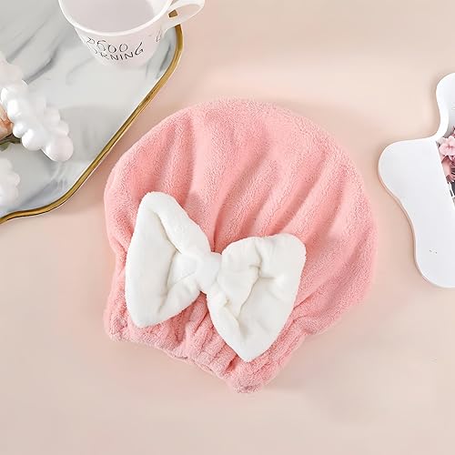 Blue Hair Drying Turban with Bow - 2Pcs Reusable Towel Cap(Pink)
