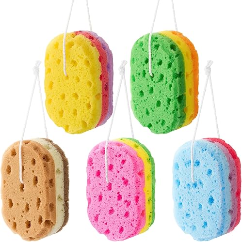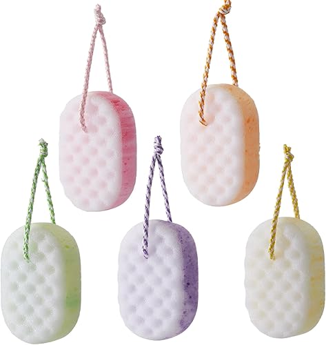 Package Contents: Contains 5 high-quality soft bath sponges in various colors (e.g. red, green and white, gray, red, green, purple, white and gray, red, white and purple, gray, white and green), enough for personal use or sharing with family members. Each sponge is packaged in an environmentally friendly vacuum sealed package to ensure hygiene and freshness