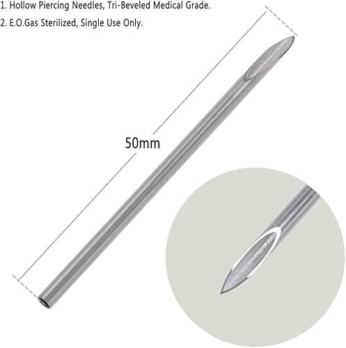 ❀SIZE——Hollow piercing needles, Tri-Beveled medical grade, outer diameter: 14G(1.6mm), 15G(1.4mm), 16G(1.2mm), 18G(1.0mm), 20G(0.8mm), length: 50mm. suitable for noes, daith, lip, labret, navel, nipple, eyebrow, cartilage, tragus and ect.