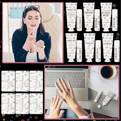 Quality Material: the 2025 employee appreciation gifts bulk set contains skin friendly ingredients that can be absorbed quickly and provide deep moisture to dry, rough hands and lips, deeply hydrate without feeling greasy, ideal for dry, busy hands and lips; For those with sensitive skin, we recommend doing a patch test before full use; Discontinue use if irritation occurs