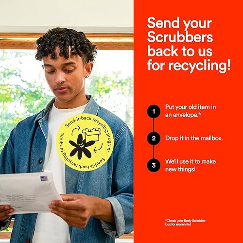 Durable & Long-Lasting – No tossing every month like a loofah pouf! Made from high-quality, recyclable material that feels like silicone, this bath scrubber for body is a loofah alternative that will last for 6 months. And you can send it back to us for recycling. Easy to clean, fast-drying, and recyclable through our send-it-back program, unlike loofah poufs.