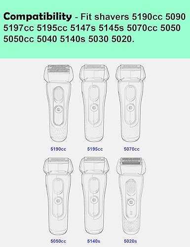 REPLACEMENT FOIL AND CUTTER FOR SERIES 5 SHAVERS: Compatible with Braun series 5 replacement head 5190cc, 5090, 5090cc, 5197cc, 5195cc, 5147s, 5145s, 5070, 5070cc, 5050, 5050cc, 5040, 5040s, 5140s, 5030, 5030s, 5020, 5020s.