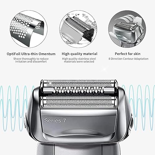 【Blade】:The series 7 foil & cutters replacement head applies floating 3-blade, precise tooth comb technology and bionic mesh design, which make shaving more comfortable and easier.Floating blade makes the blade more fit to the skin, gently remove whiskers, painless and cleaner, and the round head design perf.ectly protects your skin from being scratched. Keep you clean and fresh all day