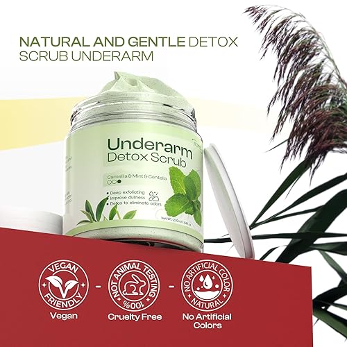 100% Pure Natural Ingredients: Underarm detox scrub combines premium camellia, peppermint, centella asiatica leaf extracts and pecan shell powder to scrub, cleanse and nourish the skin while effectively repairing the skin in a gentle, effective and non-irritating way. Hypoallergenic, no artificial colors, no residues