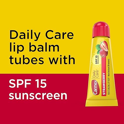 Four 3-packs of tubes (0.35 oz each) of Carmex Daily Care Moisturizing Lip Balm with SPF 15, Strawberry Lip Balm Tubes