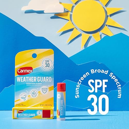 Four 0.15 oz Carmex Weather Guard Moisturizing Lip Balm Sticks with SPF 30