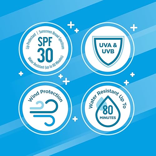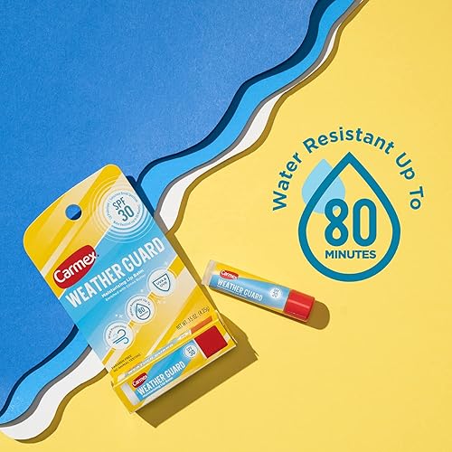 Carmex lip balm pack is water-resistant for up to 80 minutes to stay put while you swim, ski or sweat for sun protection and protection from winds