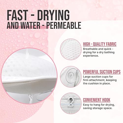 ULTIMATE COMFORT WITH 4D AIR MESH -Made from ultra-soft and breathable 4D air mesh fabric, this bathtub pillow allows excellent airflow and quick drying. Keeps your pillow fresh, odor-free, and gentle on your skin for every bath time.