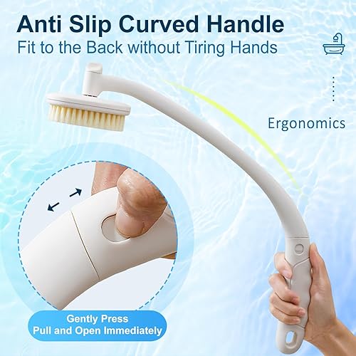 Removable and Portable:Back shower brush features a non-slip bump and arc-shaped handle design that prevents the body brush from slipping out of your hand during bathing, making it more comfortable to hold and use