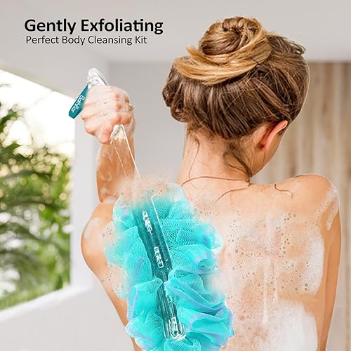 What You Get: 17 inch loofah on a stick-back scrubber *1, and 80g ultra large shower loofah sponge-shower scrubber for body *4, and hook for shower loofa and bath brush *1, and large Gift Package *1, and first-class customer service. With unrivaled advantages and benefits, it’s an ideal gift for Valentine's Day, Mother's Day, Father's Day, Thanksgiving and Christmas Day, etc.