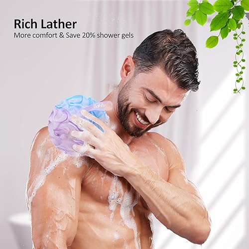 Durability with Firm Knotting: 20-year professional experience, high-grade Durability Design with 3-Bundles and 3-Knots technology, make our shower loofah sponge firmer, more durable and not easy to break.