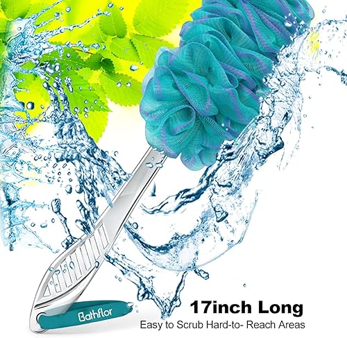 Loofah Back Scrubber: 17 inch long handle. Effortless for you to reach any part of your body, especially the back, feet, elbows and other hard-to-reach sites, very helpful for the pregnant women, elderly and other people with inconvenient joint movement.