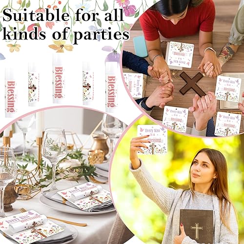 Christian floral Design: The lip balms are housed in elegant tubes adorned with an elegant design with the inspiring message, "Every Kiss is a Blessing," accompanied by a depiction of a cross adorned with flowers. In addition to their practical functions, they also add a relaxing touch to your party, whether for daily use or festive occasions.
