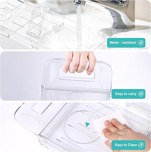 [Durable Material]: Our bathtub tray is made of thick, sturdy pp material, waterproof, and resistant to moisture, ensuring it remains as clean as new even after prolonged use.The multiple drainage holes on the bottom allow for quick drainage, making it easy to wipe clean. The bath tub tray also features a non-slip handle to securely secure it to the bathtub, eliminating the risk of it tipping over