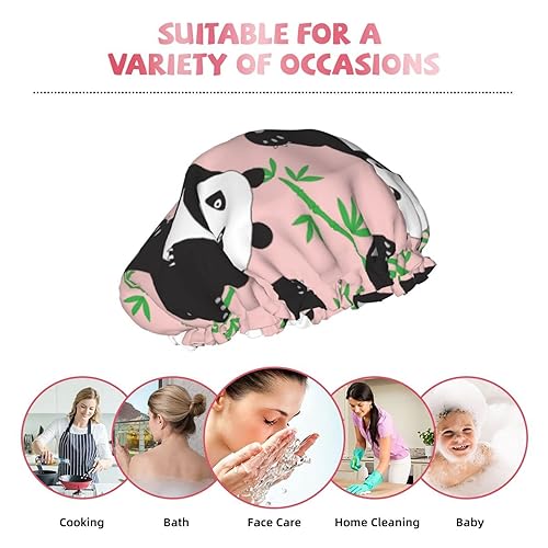 Cute Panda Shower Cap for Women - Double Waterproof Bath Hat