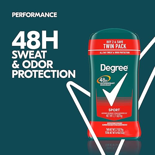 Get 48-hour sweat and odor protection with Degree Men antiperspirant deodorants, featuring Sport and Cool Rush scents.