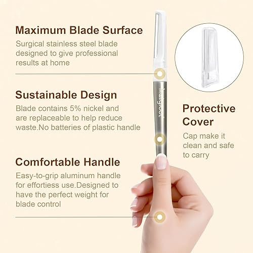 Salon-Quality Experience at Home - This facial shaver for women comes as a complete package, including one durable metal handle and 10 replaceable dermablade razors. With 5 dermaplaning tools for exfoliation and 5 eyebrow razor blades, Enjoy professional-grade dermaplaning for skin exfoliation and peach fuzz removal without leaving your home