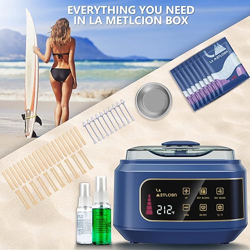 【NEW DIGITAL HARD WAX WARMER】 No more burn skin with an intelligent digital wax heater displays precise temp, temperature control with a range of 0°F–284°F(0°C–140°C). La Metlcion wax beads with a low melting point which melts fast without a painful high temps WE SUGGEST TO USE SOFT WAX FOR HAIR REMOVAL WHEN WAX MACHINE DISPLAYS ON 122°F/50°C AFTER BRAZILIAN WAX BEADS MELTING.