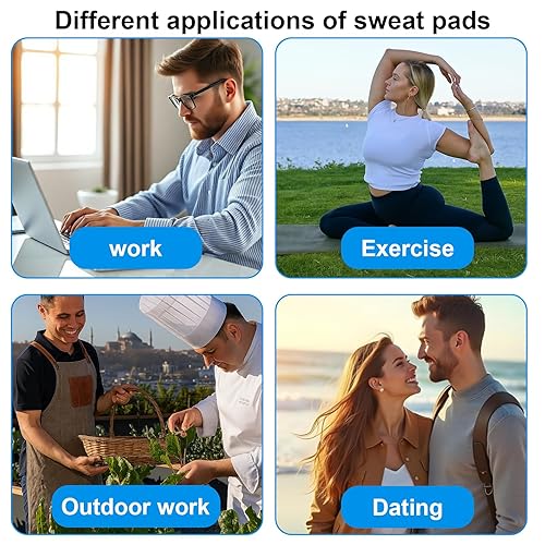 Convenient And easyTo Use:Our under arm sweat pads is super soft, ultrathin. Whether it's in your pocket, bag or office drawer, armpit pads are easily accessible when you need them. Disposable, no washing necessary, easy to use, simply remove from packaging and stick it where you need it to absorb sweat. Under arm sweat pads are a great companion for everyday travel, business trips, sports and fitness!