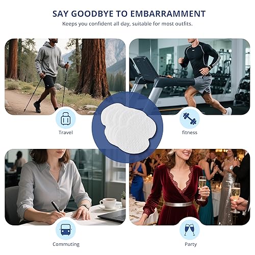 【Premium Quality】Our underarm sweat pads are made of high-quality microfiber fabric, which is highly breathable, absorbent and residue-free. The adhesive on the back is covered in dot shaped areas, making it easier for you to remove the sweatpads from the clothing.Armpit sweat pads can effectively absorb underarm sweat and odor, keeping your armpits and clothes clean and dry all day long. It is an ideal sweat absorbent for you and your family.