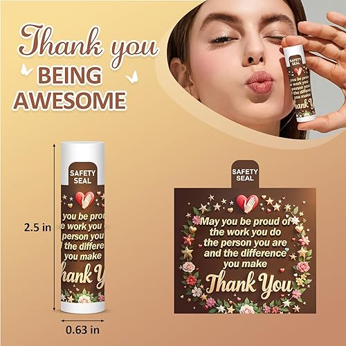 Express Gratitude in a Meaningful Way: Make someone feel truly appreciated! Each lip balm features a vibrant "May you be pound of the work you do, the person you are, and the difference you make, thank you" label with beautiful designs, offering a heartfelt and useful token of thanks perfect for anyone deserving recognition
