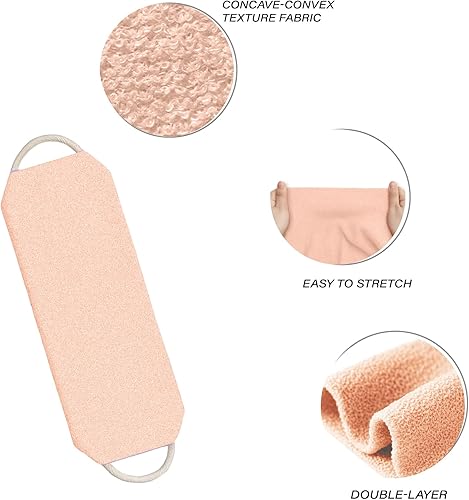 Double-Sided Back Scrubber with Handles - Long Exfoliating Towel(Pink)