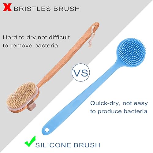 CONVENIENT AND QUICK DRYING: This back brush features a long handled shower design with a rounded fixture at the end of the handle, giving you the option to hang it anywhere for faster drying than wooden bristle brushes.