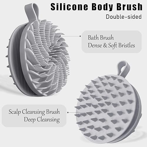 Douji Dual-Sided Silicone Body Scrubber for All Skin Types(Grey)