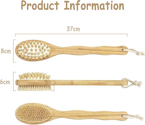 Wet and Dry: Dry brush the body before bathing, conducive to the decomposition of cellulite, promote lymphatic circulation, wet and soft contact with the skin, bathing more comfortable, the brush bristles soft and hard moderate, both comfort and cleaning