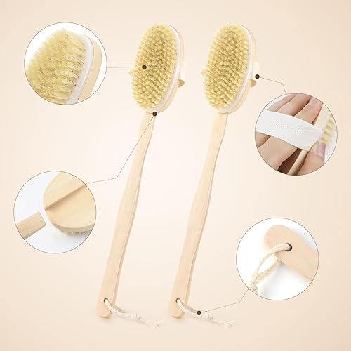 Dry Brushing Body Brush Set - 2 Pack Long Wood Handle