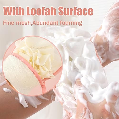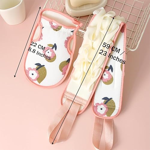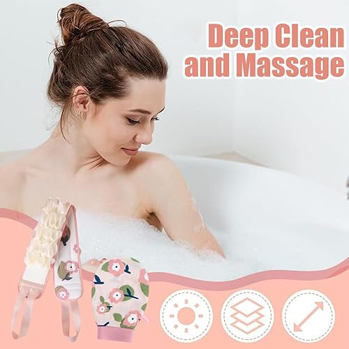 Dual-Sided Loofah Back Scrubber & Exfoliating Mitt Set(Pink)