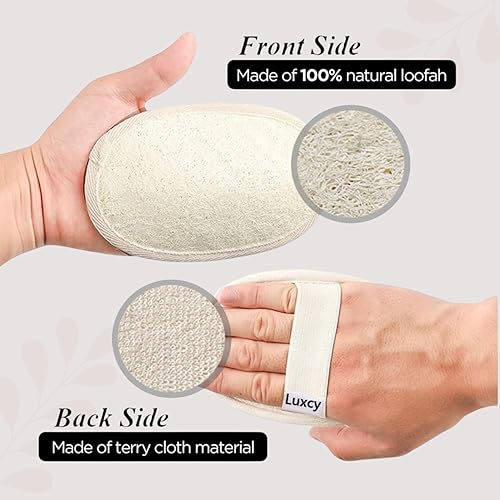 NATURAL LOOFAH shower loofah is 100% natural material for daily use. The exfoliating body scrubber removes dead skin and improves circulation to make skin smoother and softer. Luxy’s bath loofah, luffa sponge pad helps to refresh your skin naturally.